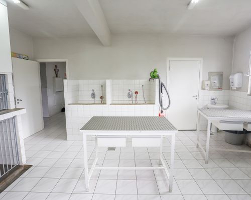 Espaço completo para banho, tosa e estética pet, com rígido controle sanitário: apenas animais vacinados e imunizados utilizam o serviço.